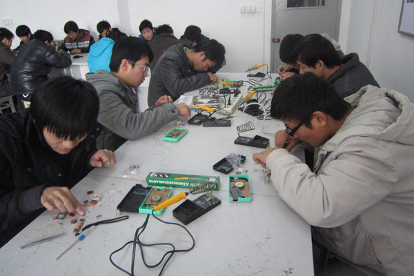 为加强对学生动手能力的培养,响应学校“应用型人才培养”的战略方针,电子通信工程学院从10月份开始历时两个多月对本院2009级电子信息工程专业全部学生开展了每组为期一周的电工电子装配实训课程。