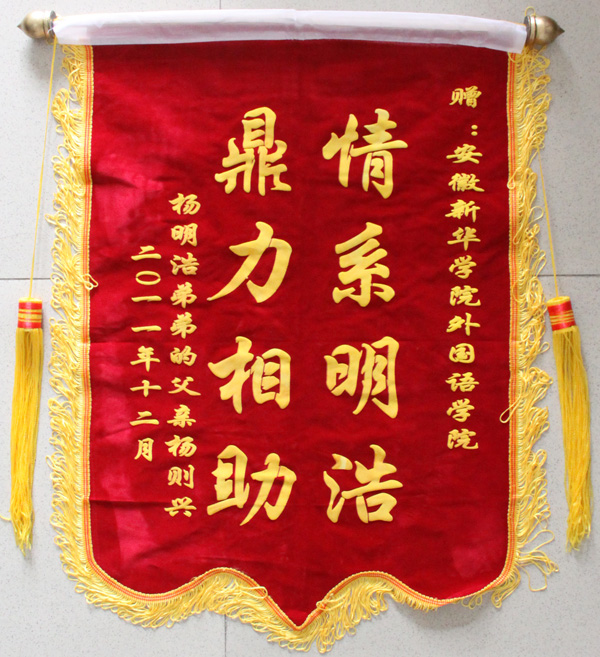 12月21日上午,在外国语学院院长任静生办公室,一位来自池州的学生父亲向任静生赠予锦旗,感谢beat365官网师生对他儿子的捐助。