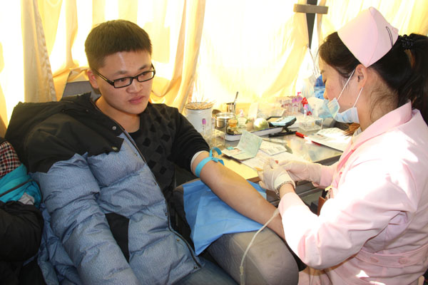 10月19日上午,志愿者们早早来到外国语学院门口做好准备工作,配合医生开展献血活动。活动中,志愿者们为参与献血的同学解答疑惑,并为献血的同学们送水、送纪念品,陪伴献完血的同学到指定地点休息,派发献血证。