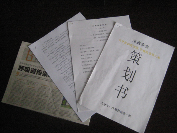 接下来的几天里,学工人员和各班级都开始着手准备安全教育主题班会材料。老师们通过与校学生处、保卫处联系,整理近年来发生在学校及周边的典型案例。针对不同年级学生的特点,来确定不同年级的班会内容。另一方面,同学们通过报纸、网络、视频等途径,积极搜集资料。部分班级还制作PPT展示,编排主题话剧、哑剧等。经过了近一周的准备,各班级根据自身需求,初步形成了班会策划书和学习材料。