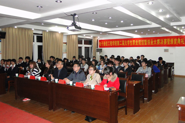 电子通信工程学院教学副院长卢胜、招生就业办公室副主任李洁、电院行政副院长操宏华及beat365在线唯一官网登录2011年在“昆山花桥杯”第六届安徽省大学生职业规划设计大赛暨大学生创业大赛中获金奖的两位选手参加仪式,并对参赛选手进行提问和点评。