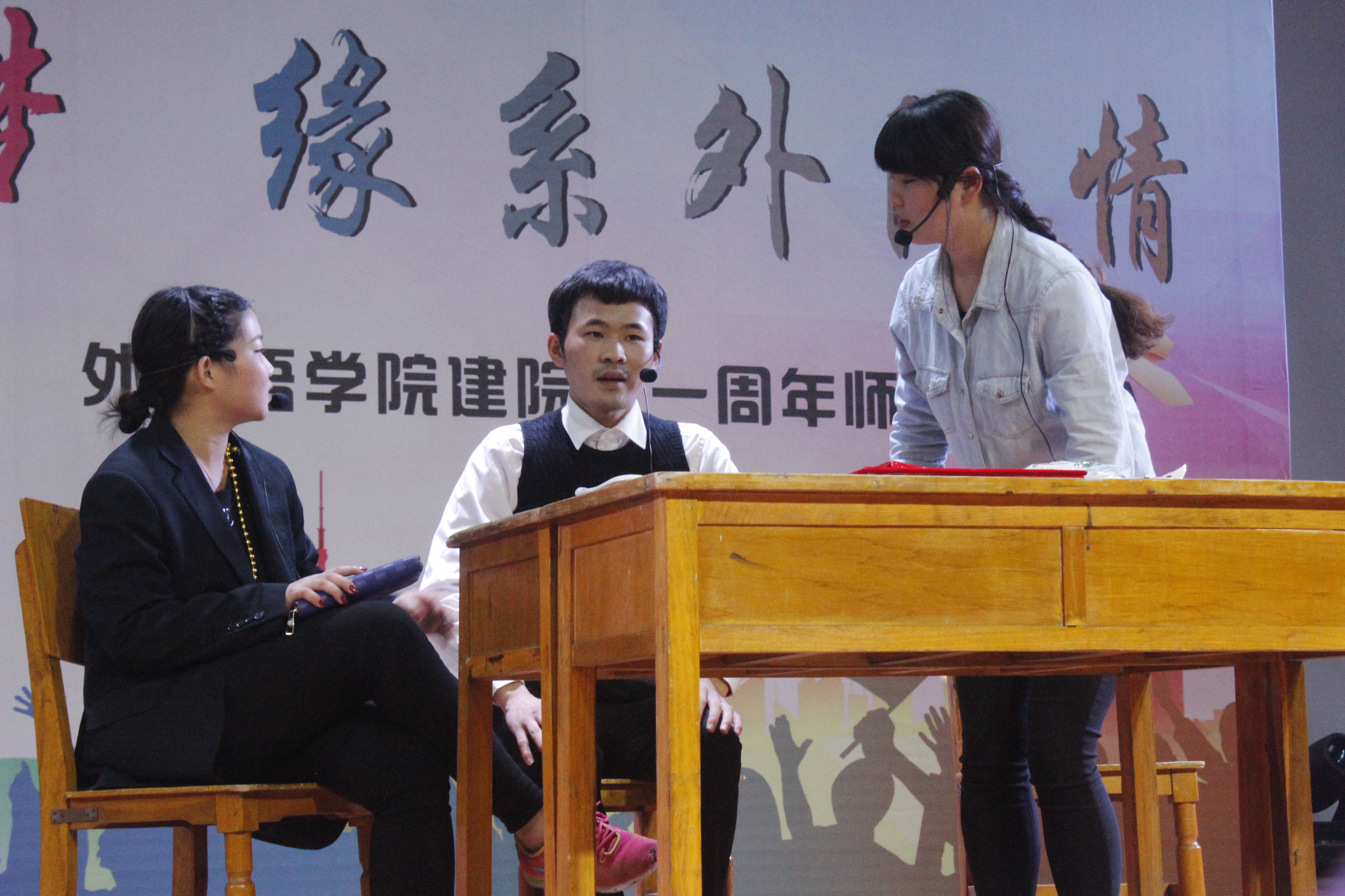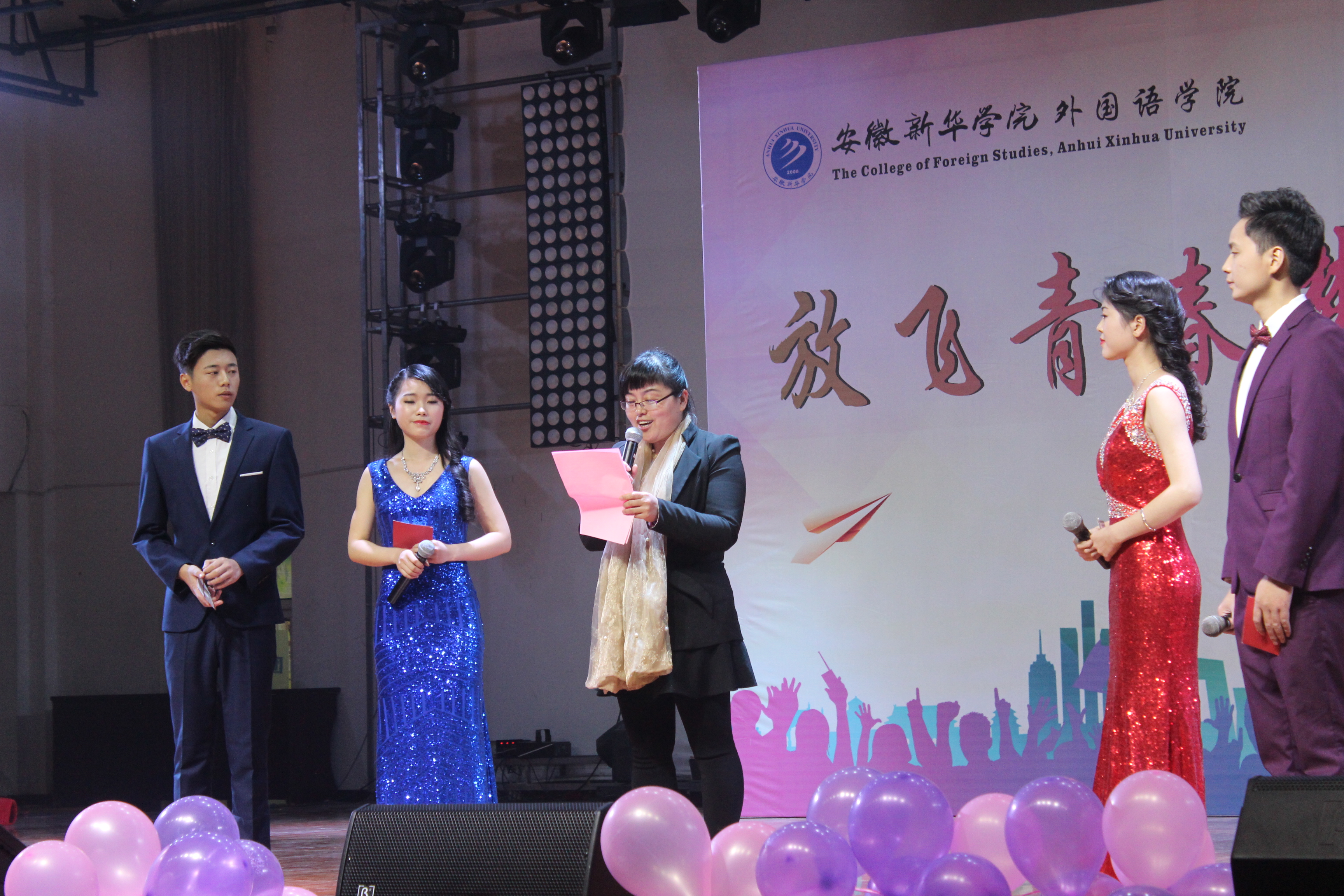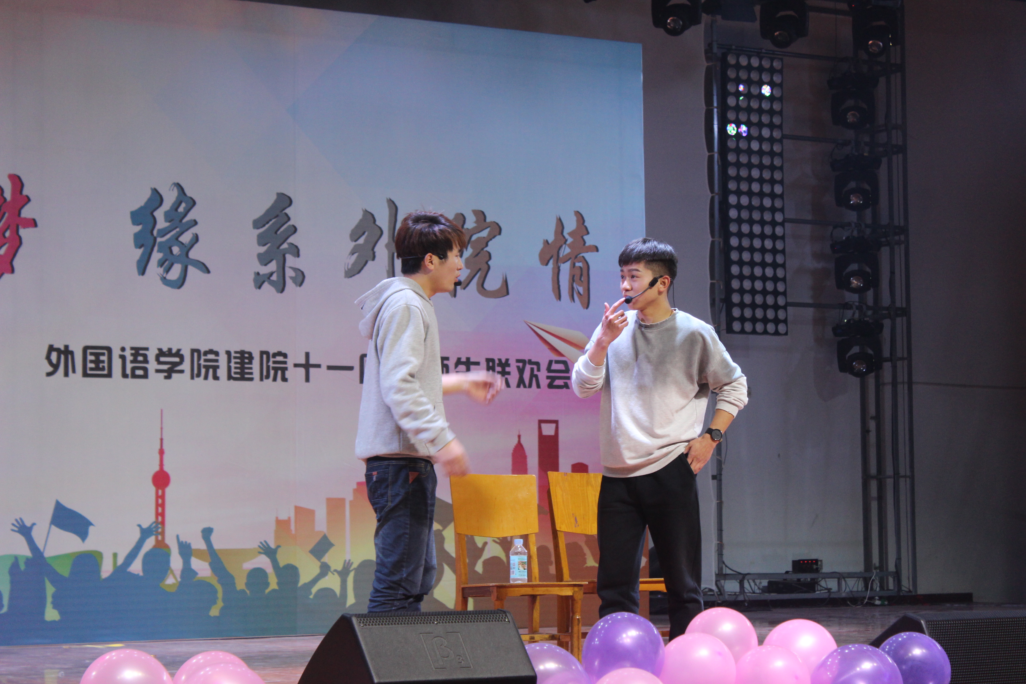 本网讯 (通讯员:万媛媛,摄影:徐叶琴)为庆祝建院11周年,12月5日晚,外国语学院 “放飞青春梦,缘系外院情”11周年暨师生联欢会在校大礼堂举办。外国语学院执行院长邵玲,药学院副院长余立新,科技学院副院长李洁,外国语学院院长助理杨艳霞、周景及外国语学院全体师生、校友代表观看了晚会。