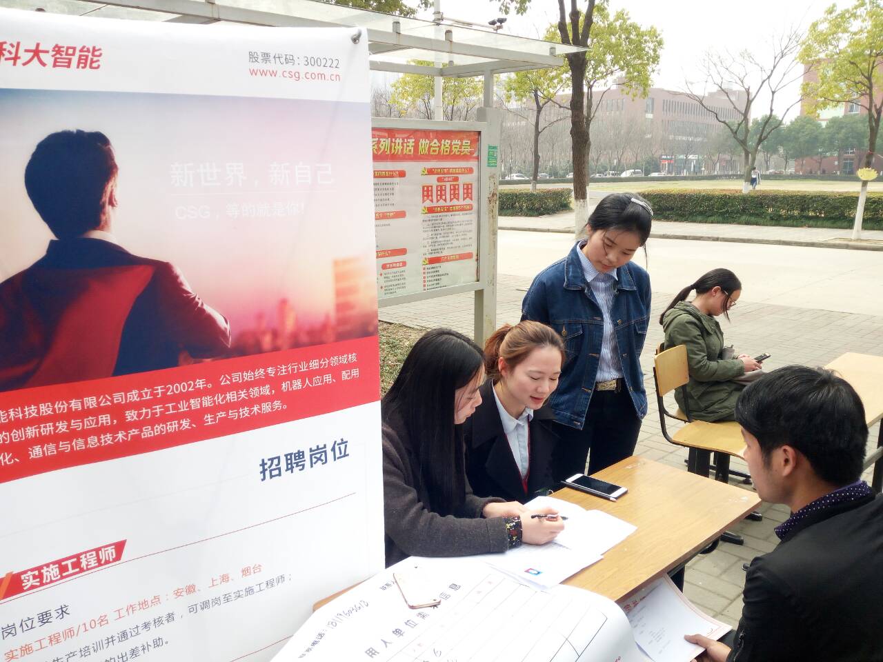 科大智能科技股份有限公司、合肥顺嘉信息技术有限公司、安徽皖通高速公路股份有限公司等6家企业公司参加招聘会,提供专业对口岗位100余个,同时还提供了部分综合性岗位。招聘会气氛热烈,学生积极主动地向用人单位投递简历。