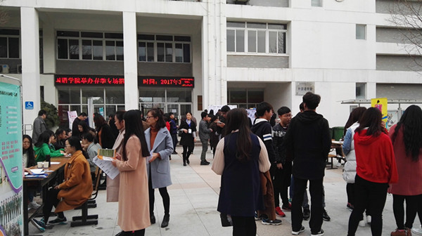 本网讯(通讯员:马兰)为切实做好2017届毕业生就业工作,3月18日下午,外国语学院举办2017年春季首场招聘会,来自广州、深圳、武汉、芜湖、合肥五地的10家用人单位、2017届180余名学生参加了此次招聘会。