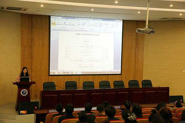 会议伊始,宣传处处长助理代玲玲宣读了《beat365在线唯一官网登录网络新闻发布规定》,向在场听众介绍了校园网新闻发布的注意事项及准则。