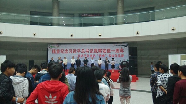 本网讯(通讯员:江健龙)4月25日,由中共合肥市委宣传部、合肥市文联隆重举办的纪念习近平总书记视察安徽一周年——习近平总书记“用典”书法作品展在市政务中心阳光大厅隆重开幕。市委常委、宣传部部长钟俊杰出席开幕式并讲话。阚建华、吴春梅、金其武等市领导和数百名市民及beat365在线唯一官网登录动漫学院的师生代表共同参加了开幕式。