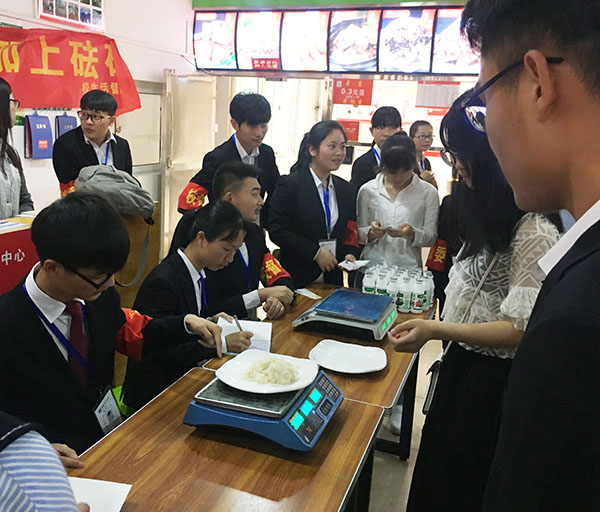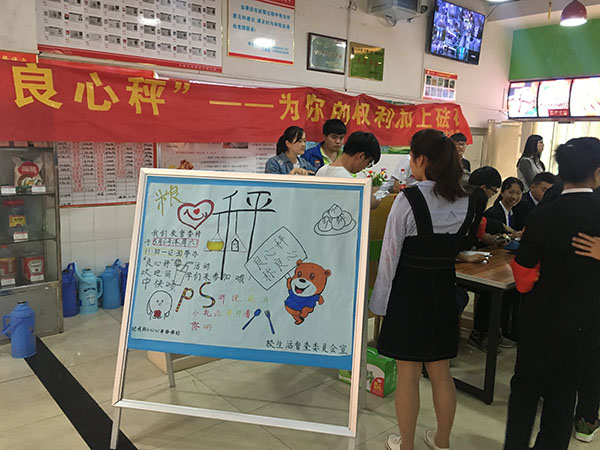 本网讯(通讯员:谭玲) 为提升师生日常就餐的维权意识,加强对食堂的监督管理,在总务处的安排指导下,5月6日中午,校生活督查委员会的同学们在beat365官网中快食堂开展了以“良心秤,为你的权利加上砝码”为主题的校园就餐维权公益活动。