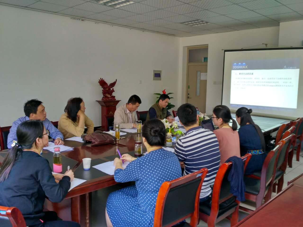 动漫学院课程建设类项目“动画专业英语”“3DS max”“photoshop””图形图像”“动漫游戏实践教学基地”项目负责人戚大为、刁俊琴、贾爱君、周蓉分别就项目建设背景、建设目标、完成情况以及今后的建设规划进行了汇报。