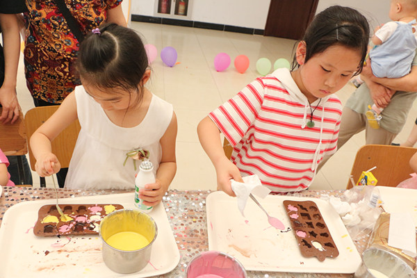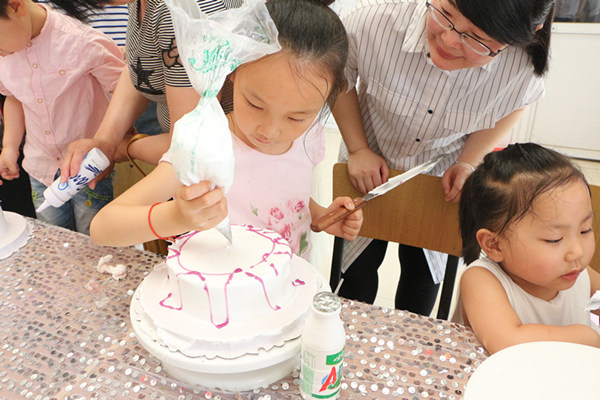 活动现场十分热闹,小朋友在父母的帮助下,用自己的想象力创造出了各种各样属于自己的节日蛋糕,并自己动手制作巧克力送给父母, 更有许多小朋友为家长们表演舞蹈、歌曲等节目。