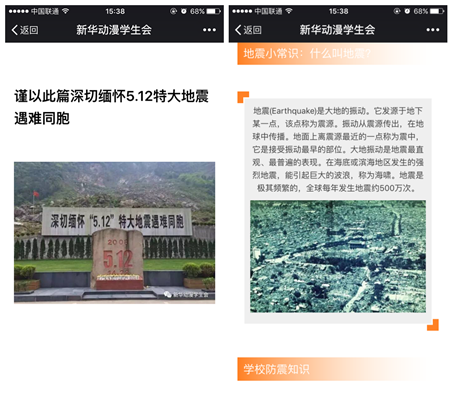 动漫学院大力推进防震减灾知识和技能普及,开展有针对性教育活动,充分发挥现代信息技术的优势,推动防震减灾知识和政策法规宣教进校园进班级。通过展示宣传展板、创作海报、微信专题推送、举办知识讲座、防震减灾班会等方式,营造地震知识人人了解,防震减灾人人参与的良好氛围,使beat365官网大学生了解防灾减灾的意义,增强防灾减灾的自觉性。