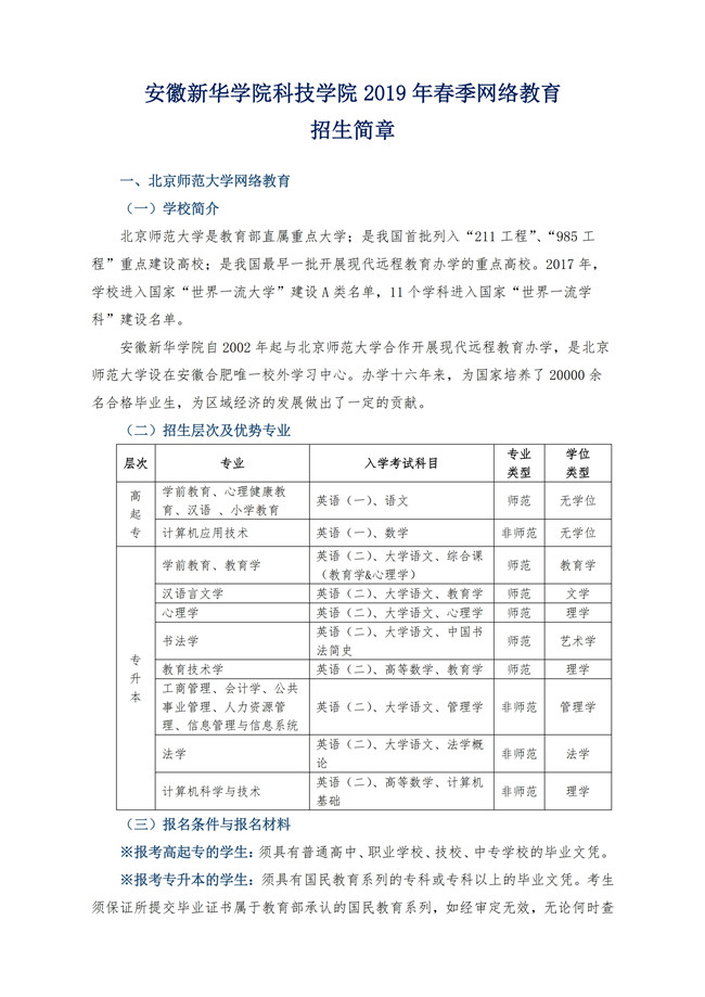 beat365在线唯一官网登录科技学院2019年春季网络教育招生简章