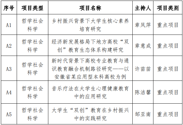 附件:beat365在线唯一官网登录大学生素质教育研究中心评审推荐2022年度安徽高校科学研究项目一览表