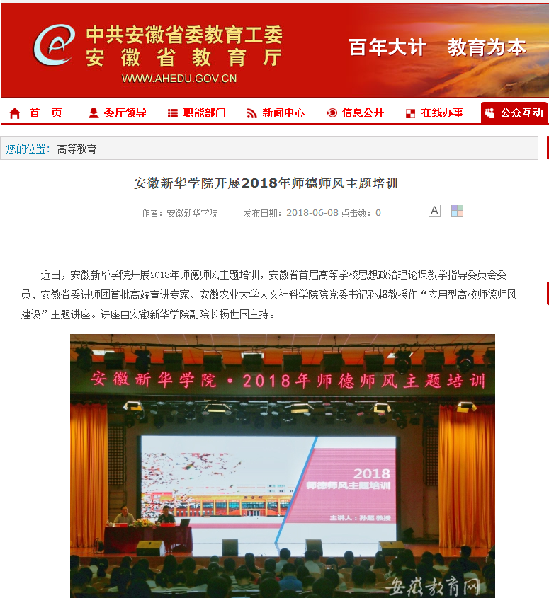 安徽教育网:beat365在线唯一官网登录开展2018年师德师风主题培训
