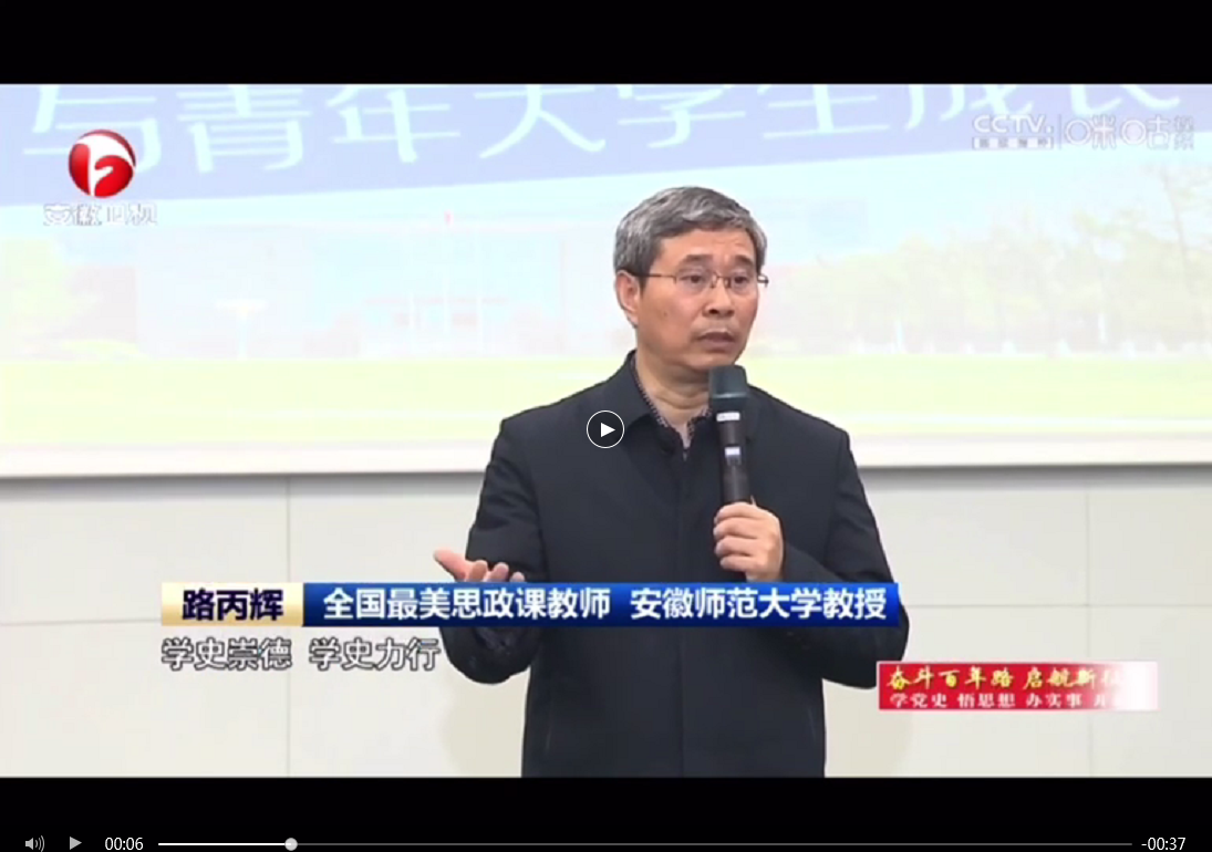 “全国最美思政课教师”来beat365官网开展主题讲座获得了《安徽新闻联播》等媒体的关注与报道。“希望把党史的学习以润物无声的方式让学生感知它。知道我们从哪里来,将来向哪里去,这样才能够承担得起我们中华民族伟大复兴的重任。”路丙辉在采访中提到。
