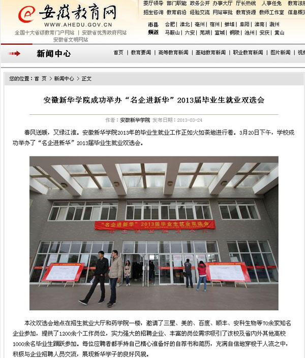 安徽教育网首页报道beat365官网成功举办就业双选会