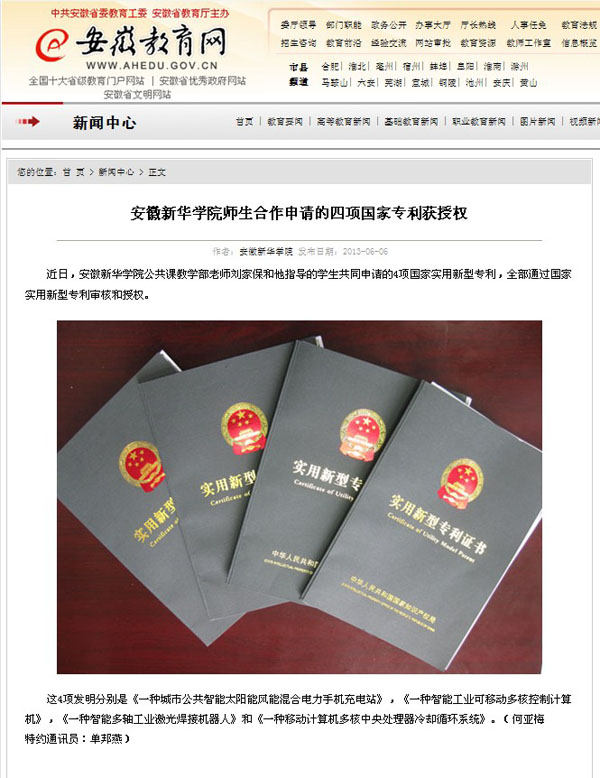 安徽教育网:beat365在线唯一官网登录四项国家专利获授权