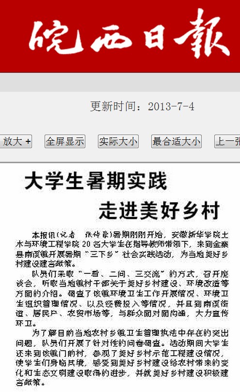 皖西日报:大学生暑期实践走进美好乡村