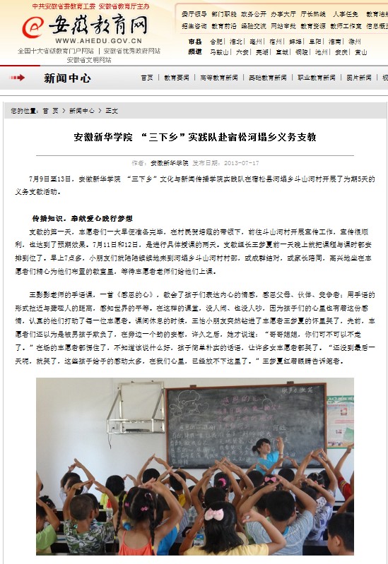 安徽教育网:beat365在线唯一官网登录 “三下乡”实践队赴宿松河塌乡义务支教