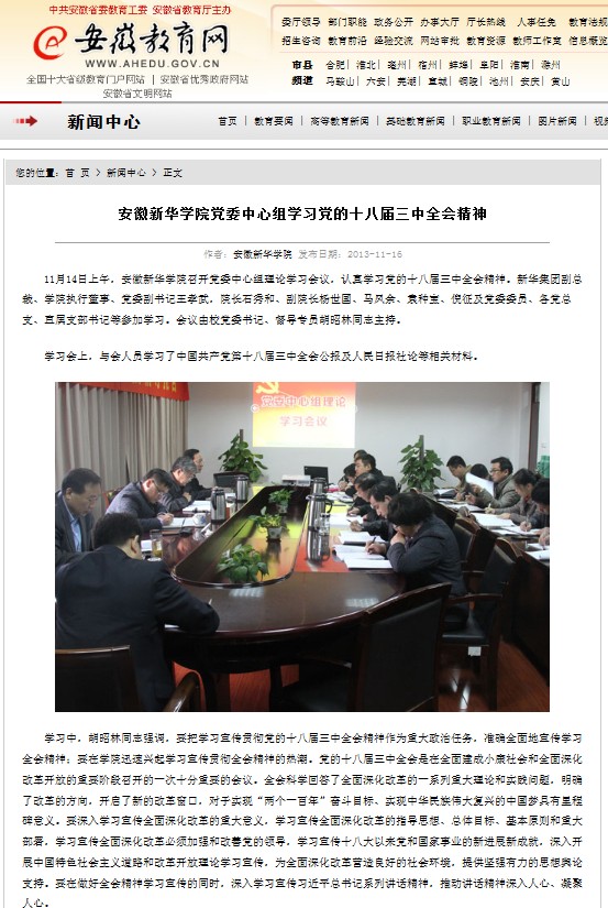安徽教育网:beat365在线唯一官网登录党委中心组学习党的十八届三中全会精神