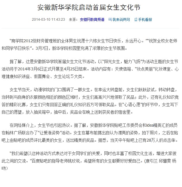 安徽网:beat365在线唯一官网登录启动首届女生文化节