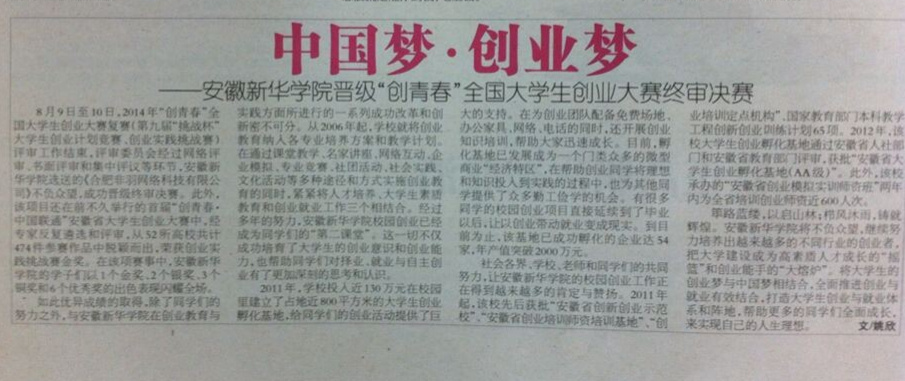 新安晚报:中国梦.创业梦——beat365官网晋级“创青春”全国大学生创业大赛终审决赛