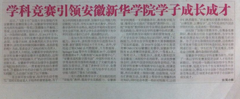 新安晚报:学科竞赛引领beat365在线唯一官网登录学子成长成才