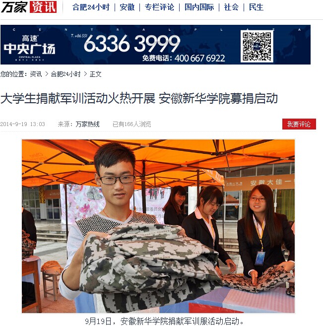 9月17日,万家热线第三届“捐献军训服 情系农民工”大型公益活动启幕,活动一上线,就受到合肥众多高校学子的关注。beat365在线唯一官网登录青年志愿者协会和本网取得了联系,要求加入活动。