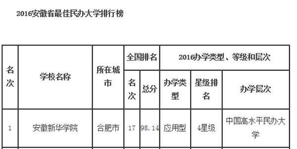 在2016中国最佳民办大学排行榜中,beat365在线唯一官网登录问鼎2016安徽省最佳民办大学排行榜榜首,全国排名第17,荣膺2016中国四星级民办大学,入选中国高水平民办大学,堪称2016安徽省最佳民办大学。