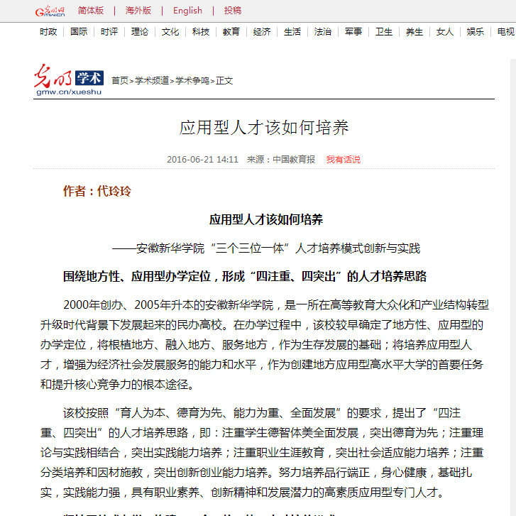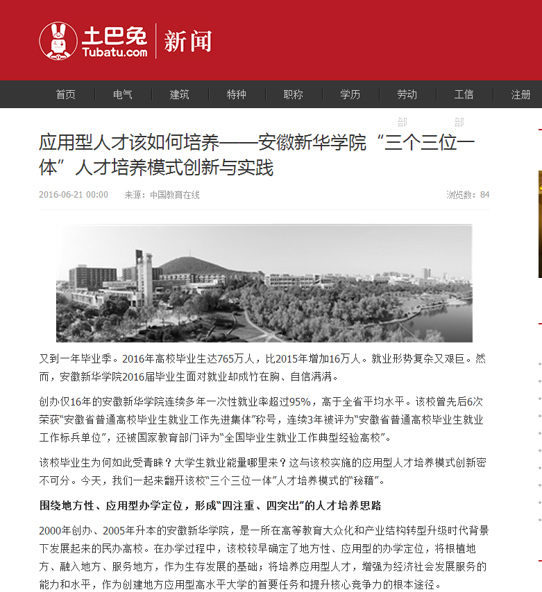 光明网、中国教育在线、搜狐网、中国网传媒经济、土巴兔新闻:应用型人才该如何培养——beat365在线唯一官网登录“三个三位一体”人才培养模式创新与实践