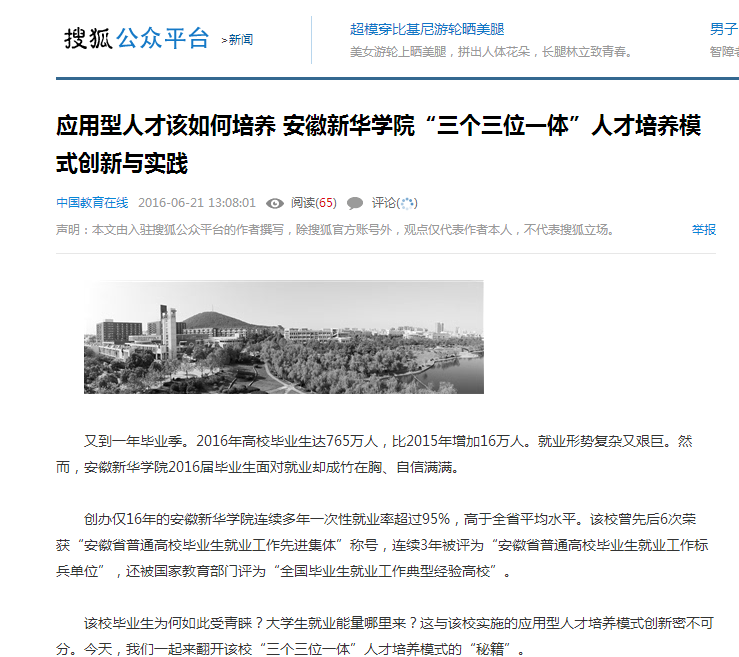 搜狐网:《中国教育报》刊登:beat365在线唯一官网登录争创安徽省地方应用型高水平大学