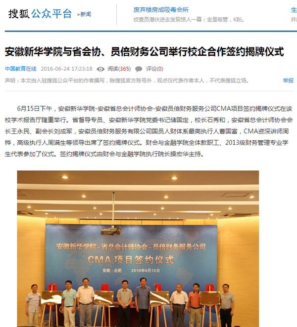 中国教育在线、搜狐网、万家热线:beat365在线唯一官网登录与省会协、员倍财务公司举行校企合作签约揭牌仪式