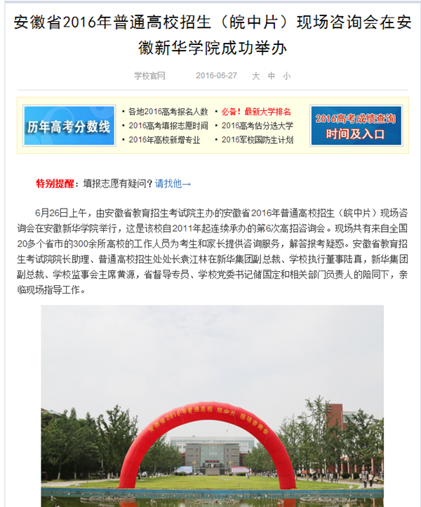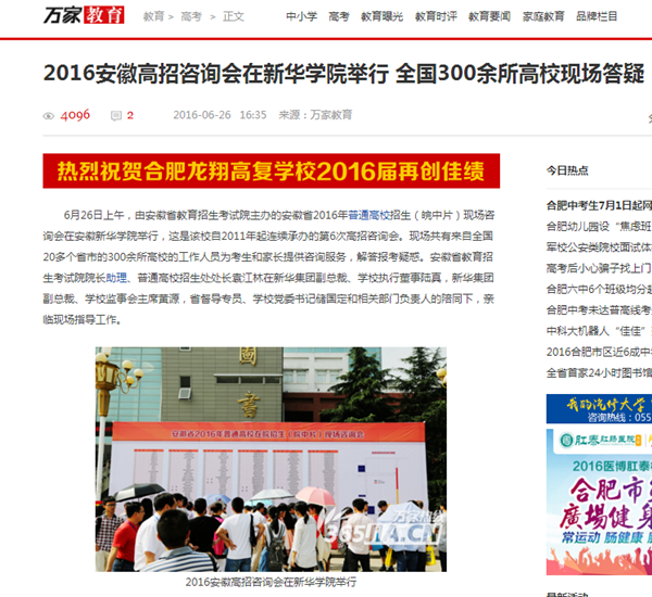 中国教育在线、今日头条、万家热线:安徽省2016年普通高校招生(皖中片)现场咨询会成功举行