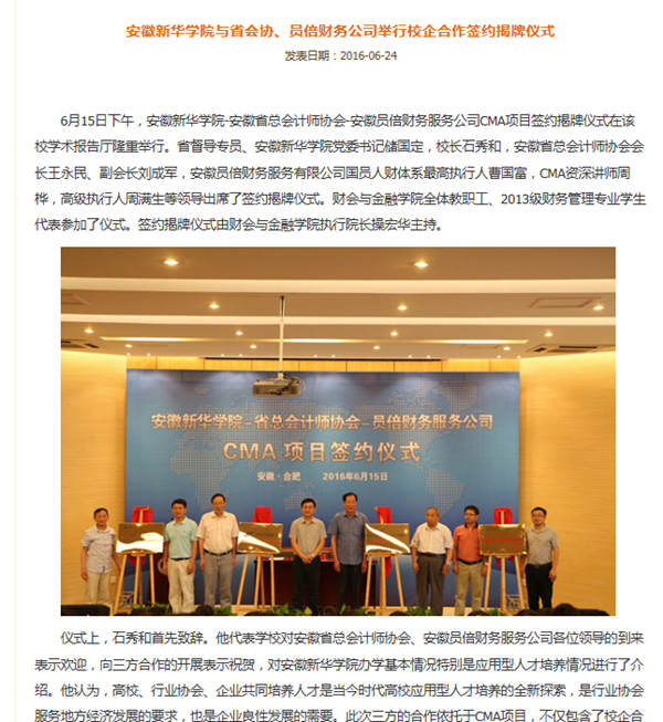 中国教育在线、搜狐网、万家热线:beat365在线唯一官网登录与省会协、员倍财务公司举行校企合作签约揭牌仪式
