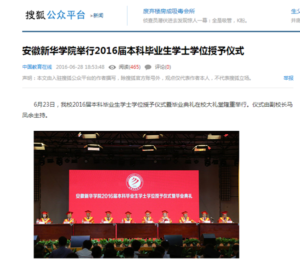 搜狐网、万家热线:beat365在线唯一官网登录举行2016届本科毕业生学士学位授予仪式