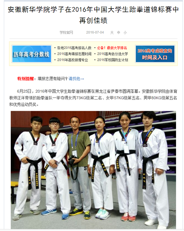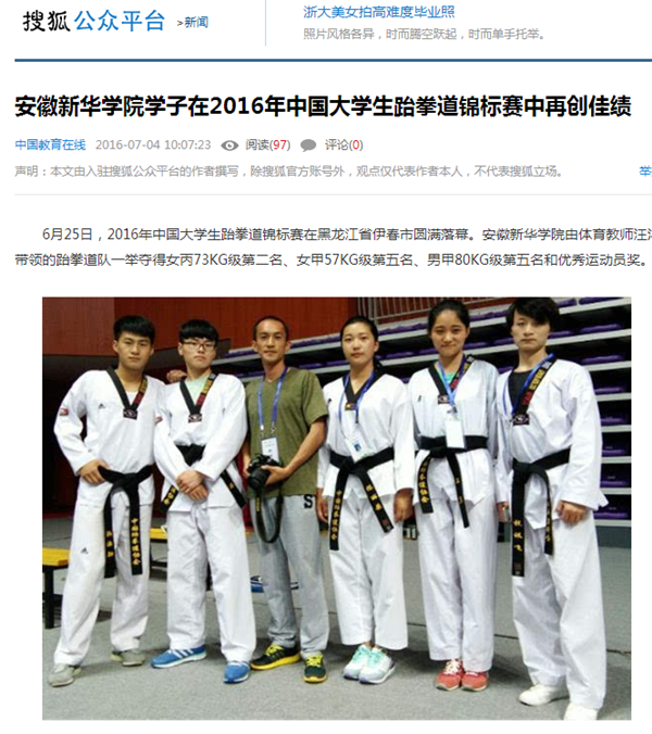 中国教育在线、搜狐网:beat365在线唯一官网登录学子在2016年中国大学生跆拳道锦标赛中再创佳绩
