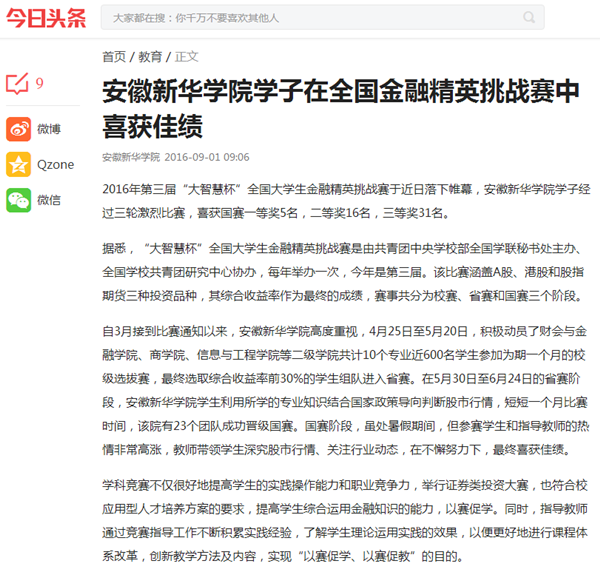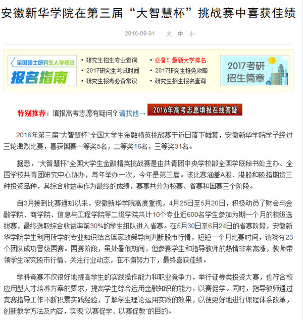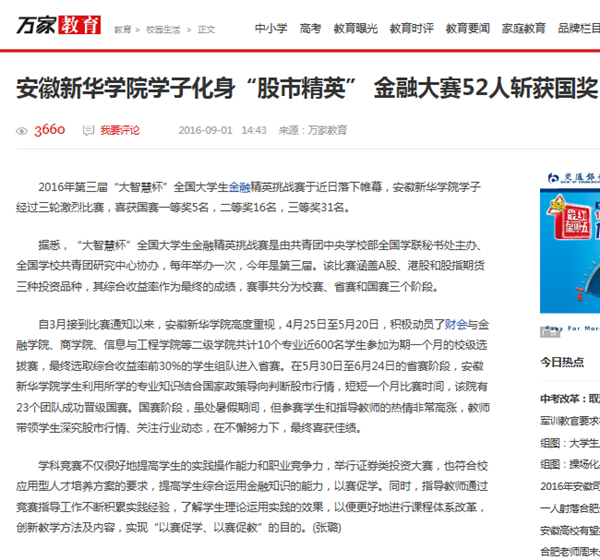 中国教育在线、今日头条、万家热线:beat365在线唯一官网登录在第三届“大智慧杯”挑战赛中喜获佳绩