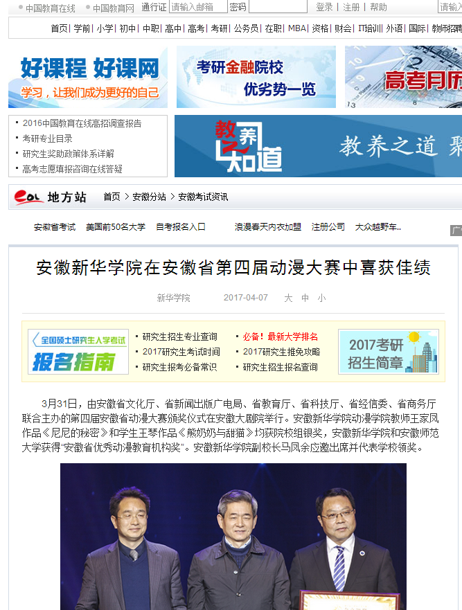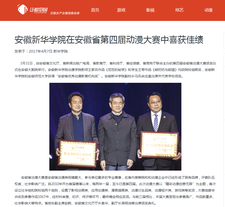 中国教育在线、泛娱中国:beat365在线唯一官网登录在安徽省第四届动漫大赛中喜获佳绩