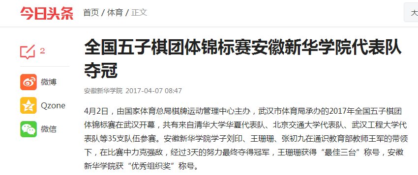 中国教育在线、今日头条:全国五子棋团体锦标赛beat365在线唯一官网登录代表队夺冠