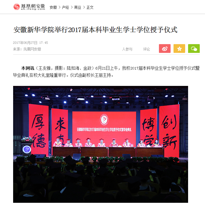 凤凰网安徽:beat365在线唯一官网登录举行2017届本科毕业生学士学位授予仪式