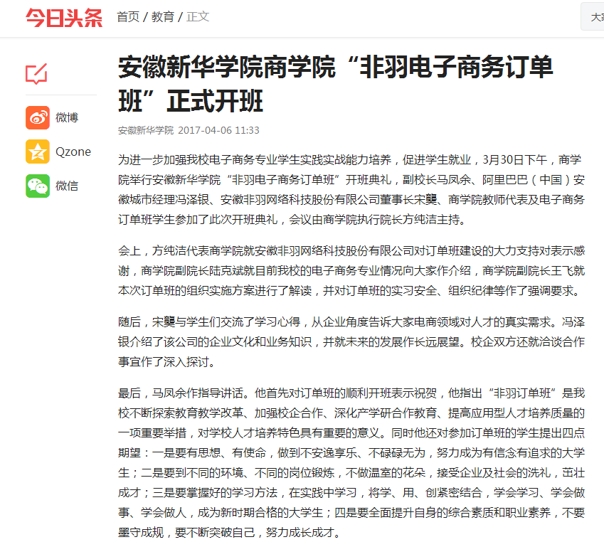 今日头条:beat365在线唯一官网登录商学院“非羽电子商务订单班”正式开班
