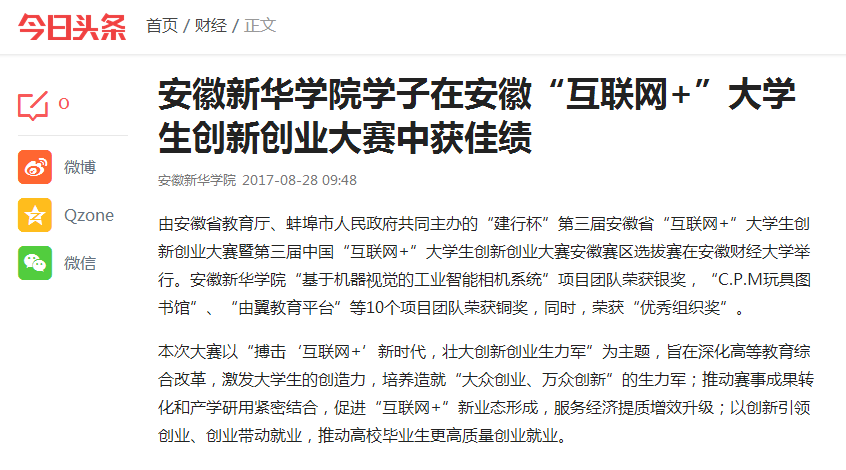 今日头条:beat365在线唯一官网登录学子在安徽“互联网+”大学生创新创业大赛中获佳绩