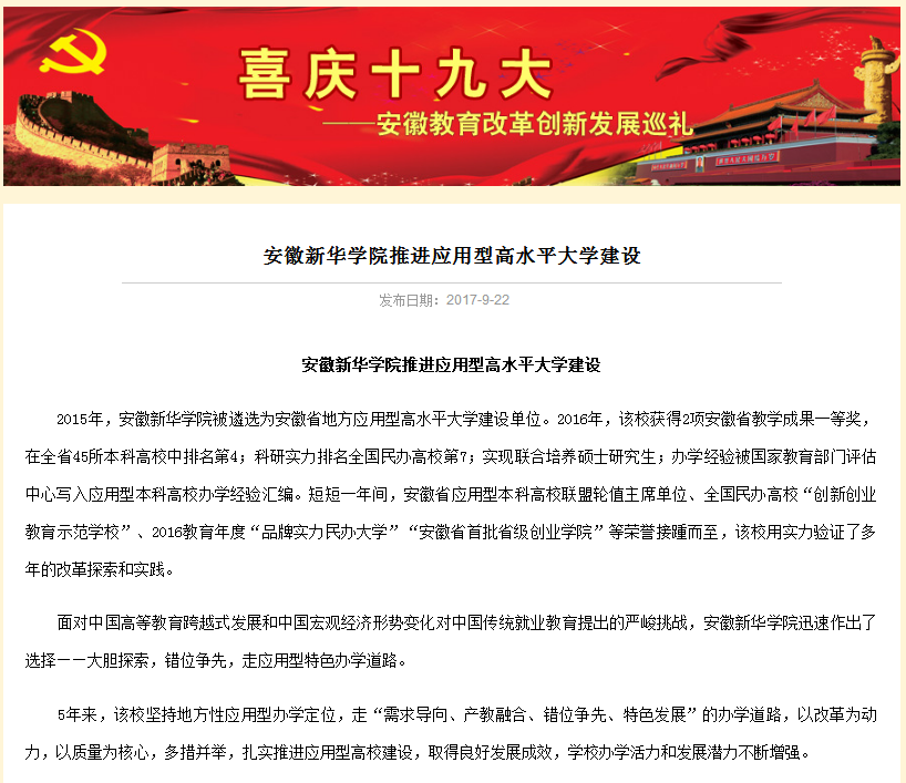 安徽教育网:beat365在线唯一官网登录推进应用型高水平大学建设
