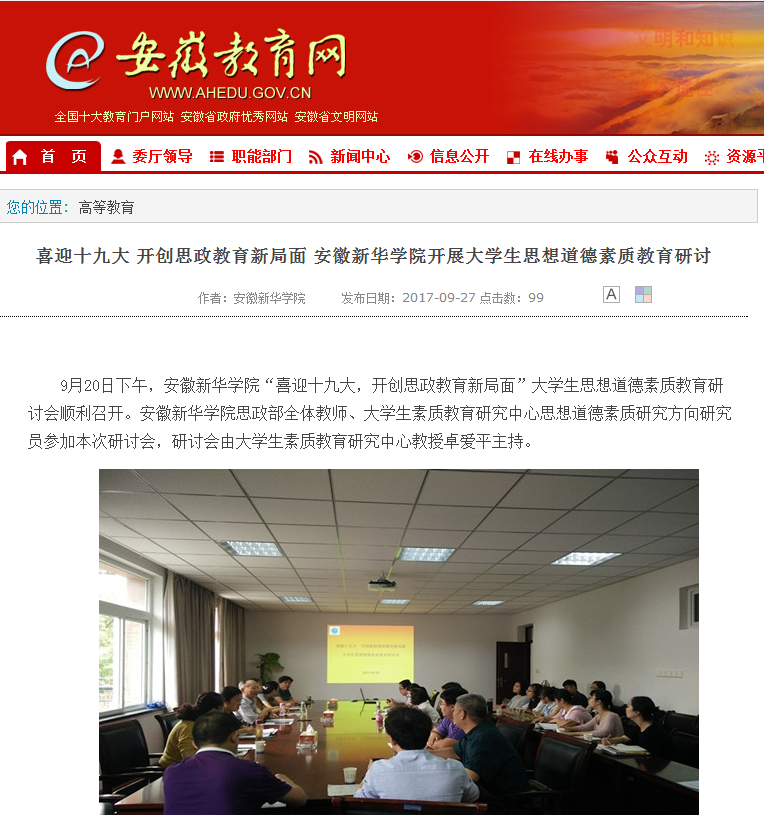 安徽教育网:喜迎十九大 开创思政教育新局面 beat365在线唯一官网登录开展大学生思想道德素质教育研讨