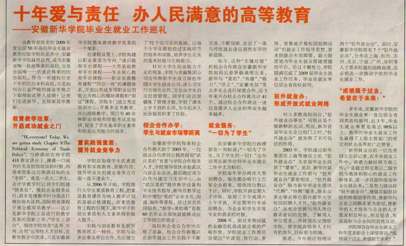 2010年6月25日,安徽商报/07/独家报道/调查版,对我院毕业生就业工作情况进行了相关报道。