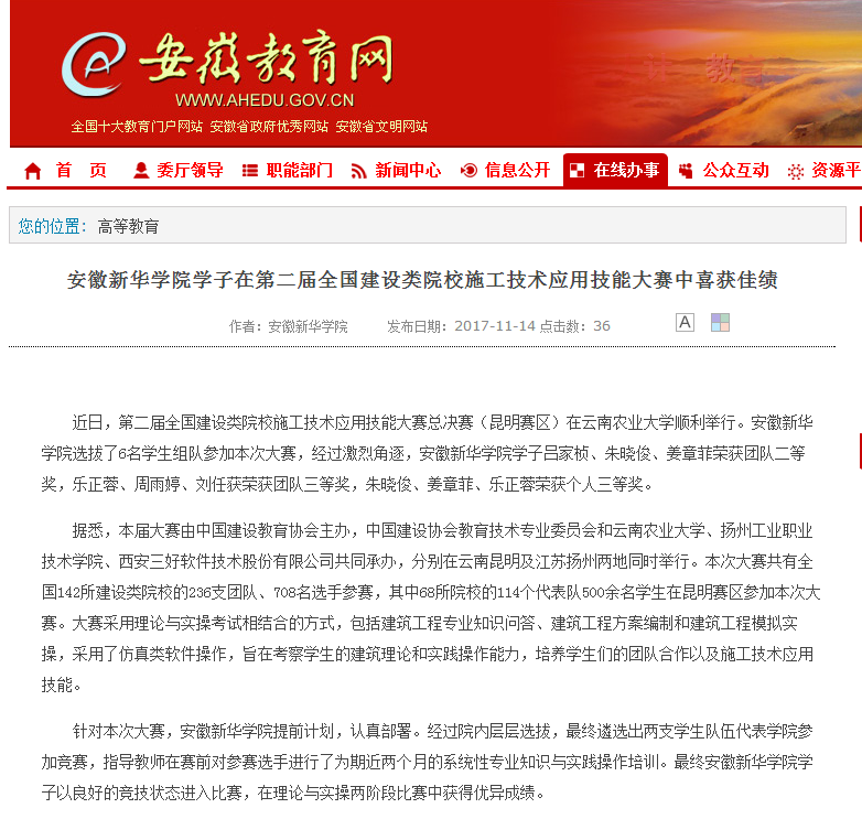 安徽教育网:beat365在线唯一官网登录学子在第二届全国建设类院校施工技术应用技能大赛中喜获佳绩
