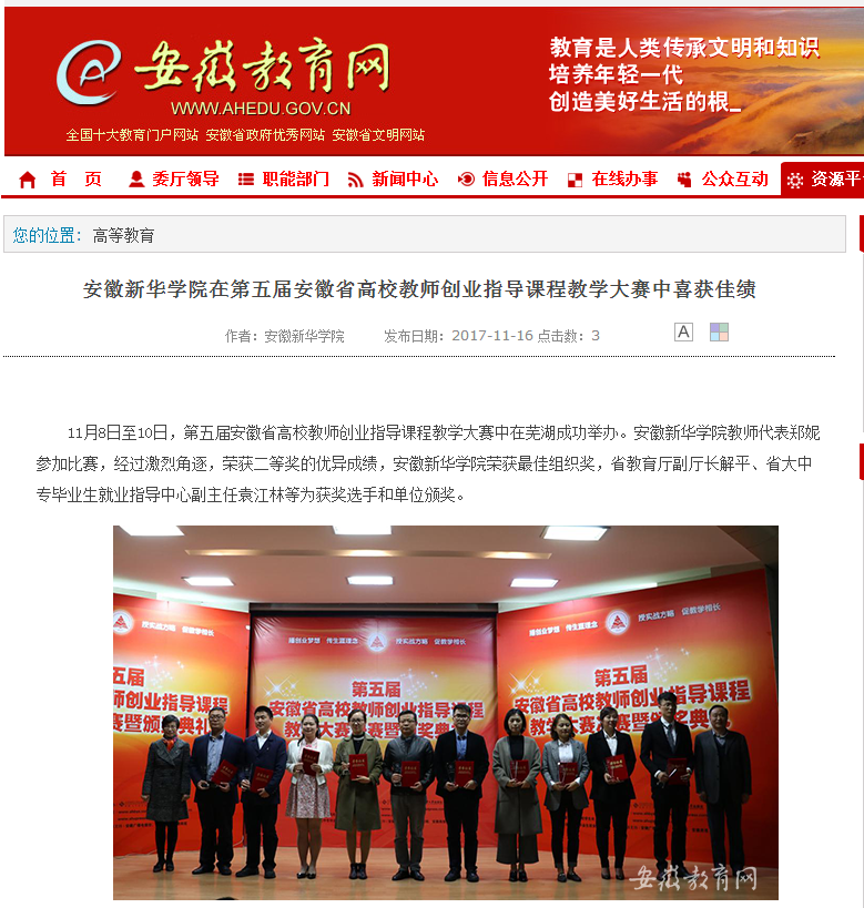 安徽教育网:beat365在线唯一官网登录在第五届安徽省高校教师创业指导课程教学大赛中喜获佳绩